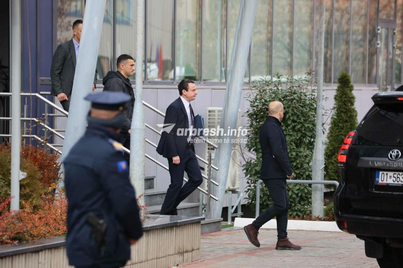 Pas përfundimit të takimit me ambasadorët, Kurti është parë duke u larguar shpejtë nga objekti i Qeverisë së Kosovës./Arbresh.info/