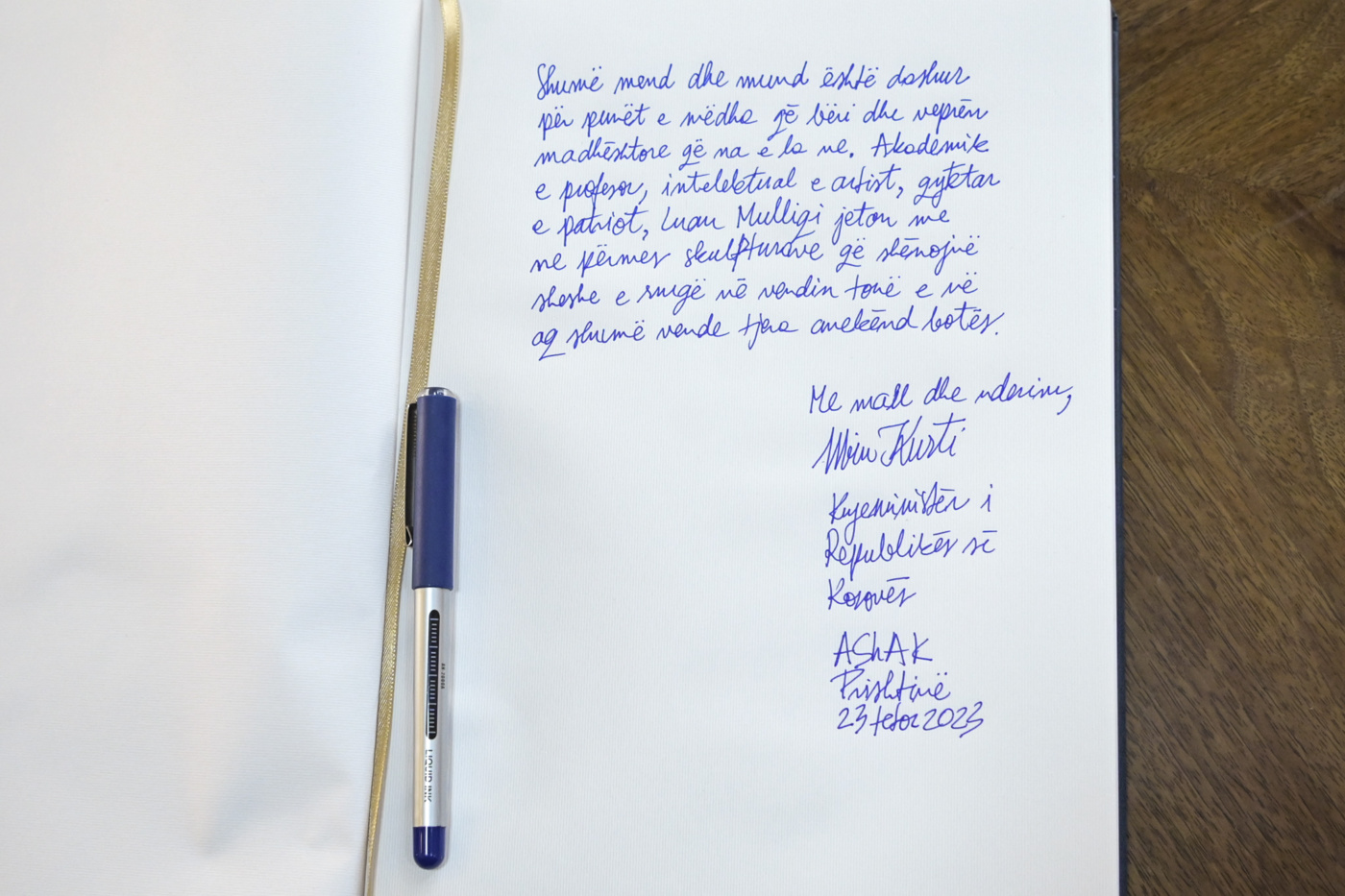 Kryeministri i Republikës së Kosovës, Albin Kurti, ka vendosur lule të freskëta dhe ka bërë homazhe para arkivolit të skulptorit Luan Mulliqi, të vendosur në hollin e Akademisë së Shkencave dhe Arteve të Kosovës.