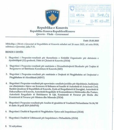 Sipas njoftimit, mbledhje do të mbahet në ora 09:00 ndërsa në rend dite për këtë mbledhje janë tetë pika, përcjell Arbresh.info.