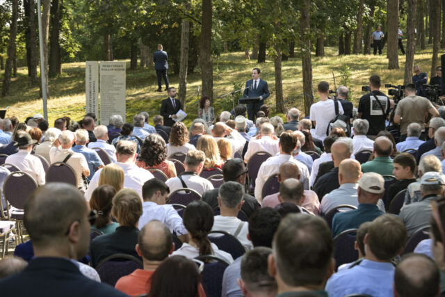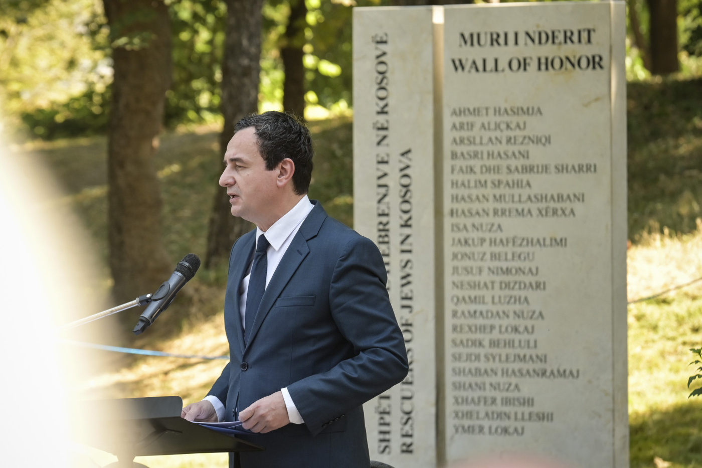 Në ambientet e Parkut të Qytetit në Prishtinë, kryeministri Kurti u shpreh i nderuar të jetë pjesëmarrës në ceremoninë e inaugurimit të këtij muri i cili nderon vetëmohimin dhe sakrificën e shqiptarëve në Kosovë që shpëtuan miqtë dhe fqinjët e tyre hebrenj nga e keqja e Holokaustit.