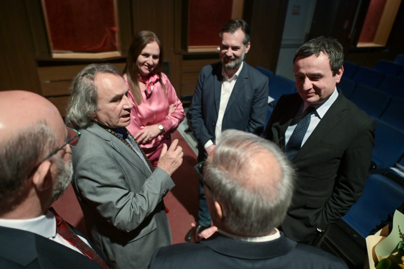 “Çdo dokumentar i konceptuar për artistin, është dyfish i tillë. Dokument i krijimit të njërit me krijimin që e sjell tjetri. Sonte do të shohim dokumentarin e dy të mëdhenjve. Miq të artit e të mendimit”, tha në krye të herës së fjalës së tij kryeministri Kurti, para shumë artistëve e të pranishmëve në Kino Armata.