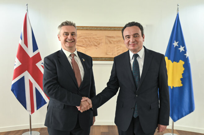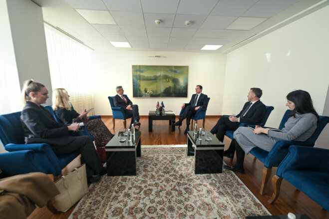 Kryeministri në detyrë, Albin Kurti, mirëpriti sot në takim Ambasadorin e Mbretërisë së Bashkuar në Kosovë, Jonathan Hargreaves.