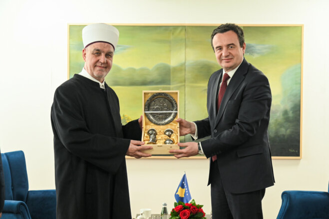 Kryeministri në datyrë, Albin Kurti, i shoqëruar nga myftiu Naim Tërnava dhe deputeti i zgjedhur, njëherësh Kryetari i Koalicionit VAKAT, Rasim Demiri, mirëpriti sot Kryetarin e Bashkësisë Islame të Bosnje dhe Hercegovinës, Husein Kavazović.