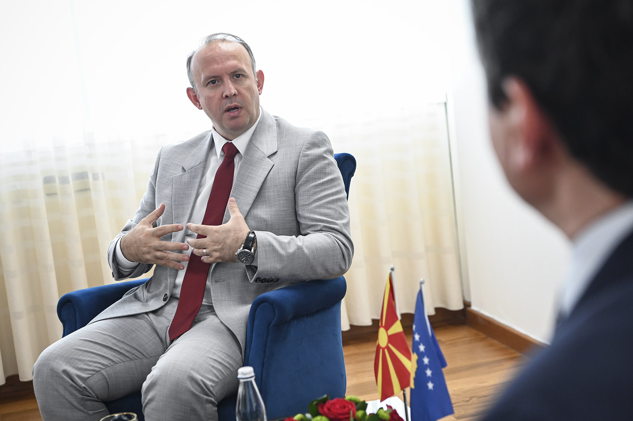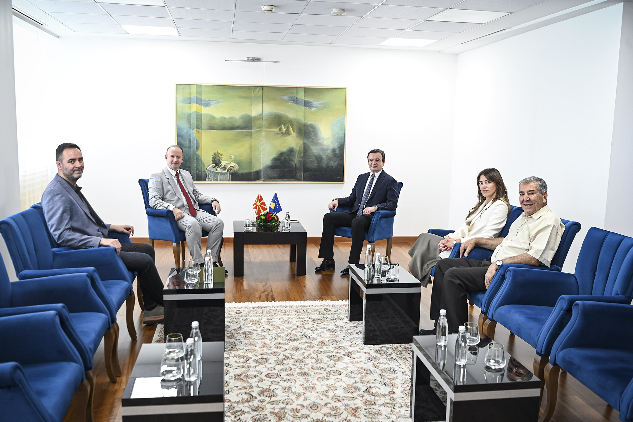 Kryeministri në detyrë i Republikës së Kosovës, Albin Kurti, i shoqëruar nga ministrja në detyrë e Drejtësisë, Albulena Haxhiu, kryesuesi i seancës konstituive, Avni Dehari, dhe ish-kryetari i Kuvendit, Glauk Konjufca, mirëpriti Kryetarin e Kuvendit të Maqedonisë së Veriut, Afrim Gashi.