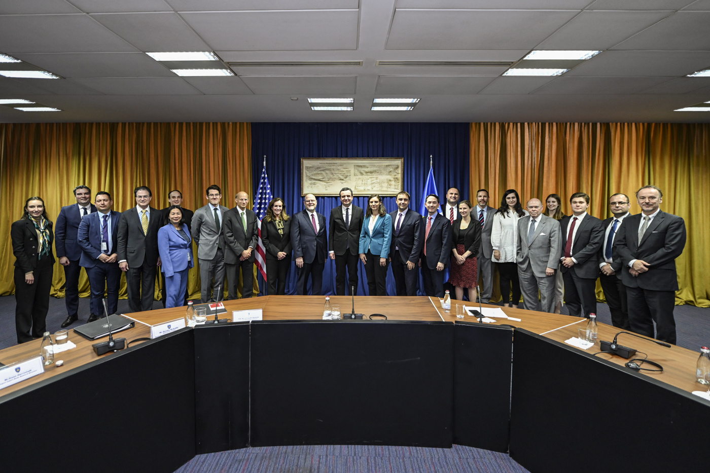 Kryeministri i Republikës së Kosovës, Albin Kurti, së bashku me ministren e Ekonomisë, Artane Rizvanolli dhe shefin e Stafit të Kryeministrit, Luan Dalipi mirëpritën sot në ndërtesën e Qeverisë një delegacion të përfaqësuesve të Departamentit të Shtetit Amerikan, Korporatës Financiare për Zhvillim Ndërkombëtar (DFC), Korporatës së Sfidës së Mijëvjeçarit (MCC), Bankës Amerikane për Eksport-Import, Shoqatës së Biznesit Amerikë – Evropë Qendrore, si dhe përfaqësues të gjashtë kompanive të mëdha amerikane të sektorit të energjisë, General Electric, Honeywell, Emerson Electric, Siemens Energy, Advent Technologies, dhe Wethington International. Ky delegacion udhëhiqej nga ambasadori i ShBA-ve në Kosovë, Jeffrey Hovenier.