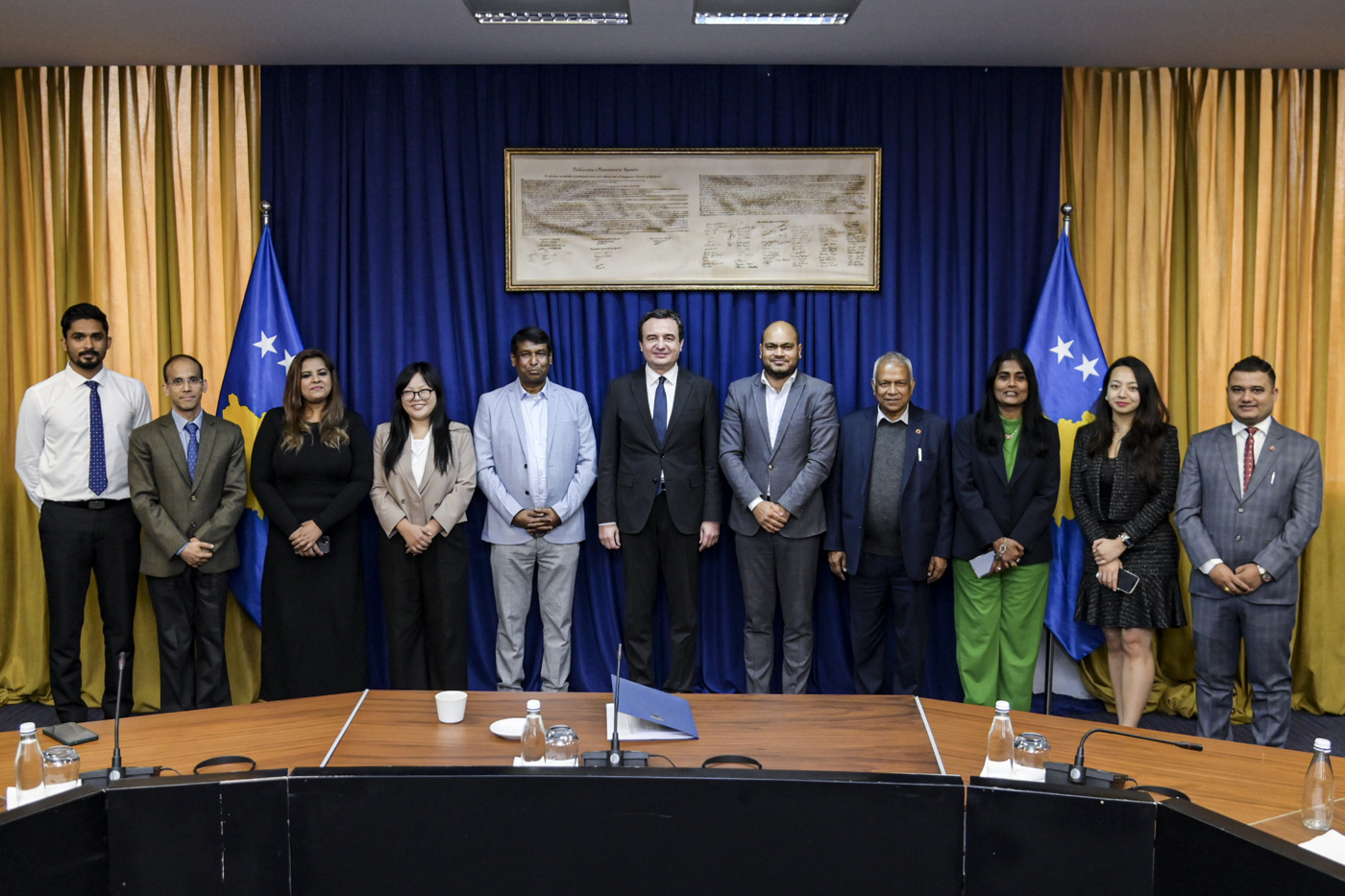 Kryeministri i Republikës së Kosovës, Albin Kurti, mirëpriti sot në Ndërtesën e Qeverisë një delegacion të përbërë nga profesorë, gazetarë dhe përfaqësues të shoqërisë civile nga Nepali, Sri Lanka, Bangladeshi, India dhe Maldivet.