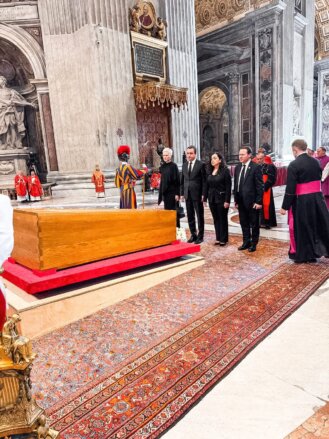 Në këtë ceremoni morën pjesë qindra delegacione nga e gjithë bota dhe qindra mijëra qytetarë për t’i dhënë lamtumirën e fundit, Papa Françeskut. E pranishme gjithashtu ishte presidentja e vendit, Vjosa Osmani-Sadriu. Së bashku, ata bënë homazhe pranë arkivolit të Shenjtërisë së Tij, Papa Françeskut.