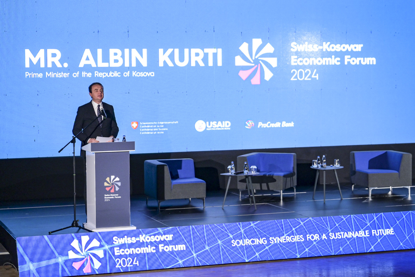 Kryeministri i Republikës së Kosovës, Albin Kurti, mori pjesë në forumin Ekonomik Zvicër-Kosovë 2024, ku ishte i ftuar për fjalë hyrëse të forumit.