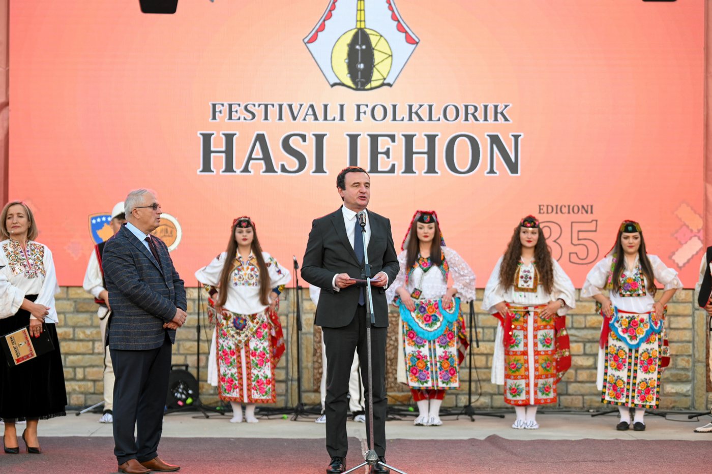 Mbrëmë, Kryeministri i Republikës së Kosovës, Albin Kurti, qëndroi në Gjonaj të Hasit, në hapjen e edicionit të 35-të të Festivalit folklorik “Hasi Jehon 2024”, i cili mbahet në datat 2, 3 dhe 4 në Kodrën e Pajtimit, të fshatit Gjonaj.