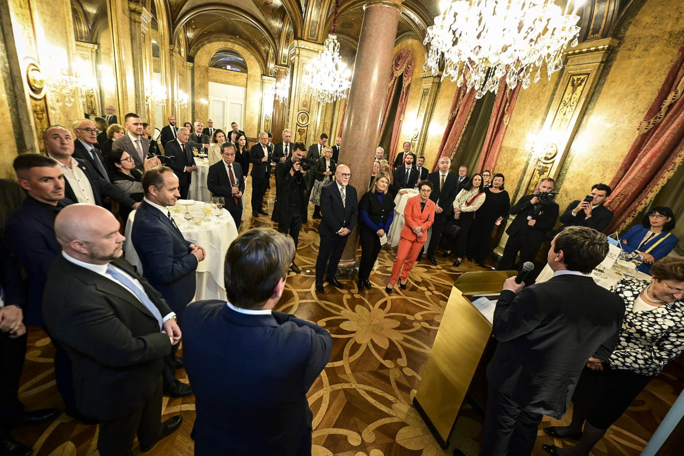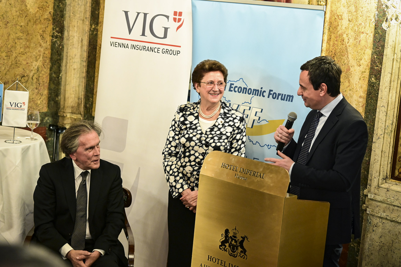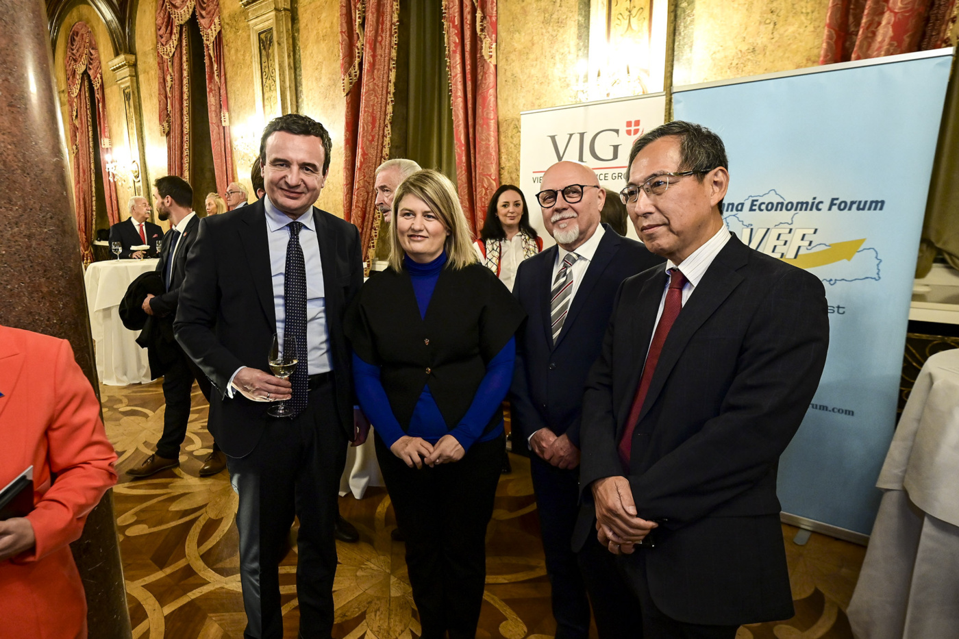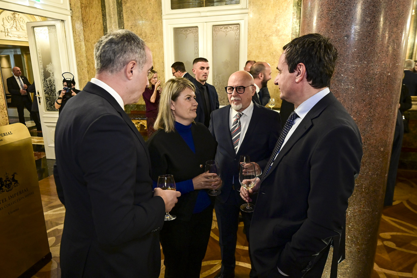 Kryeministri i vendit, Albin Kurti dhe zëvendëskryeministrja dhe ministrja e Punëve të Jashtme dhe Diasporës, Donika Gërvalla-Schwarz morën pjesë mbrëmë në pritjen mirëseardhëse që i paraprinë Forumit Ekonomik të Vjenës, i cili mbahet sot.