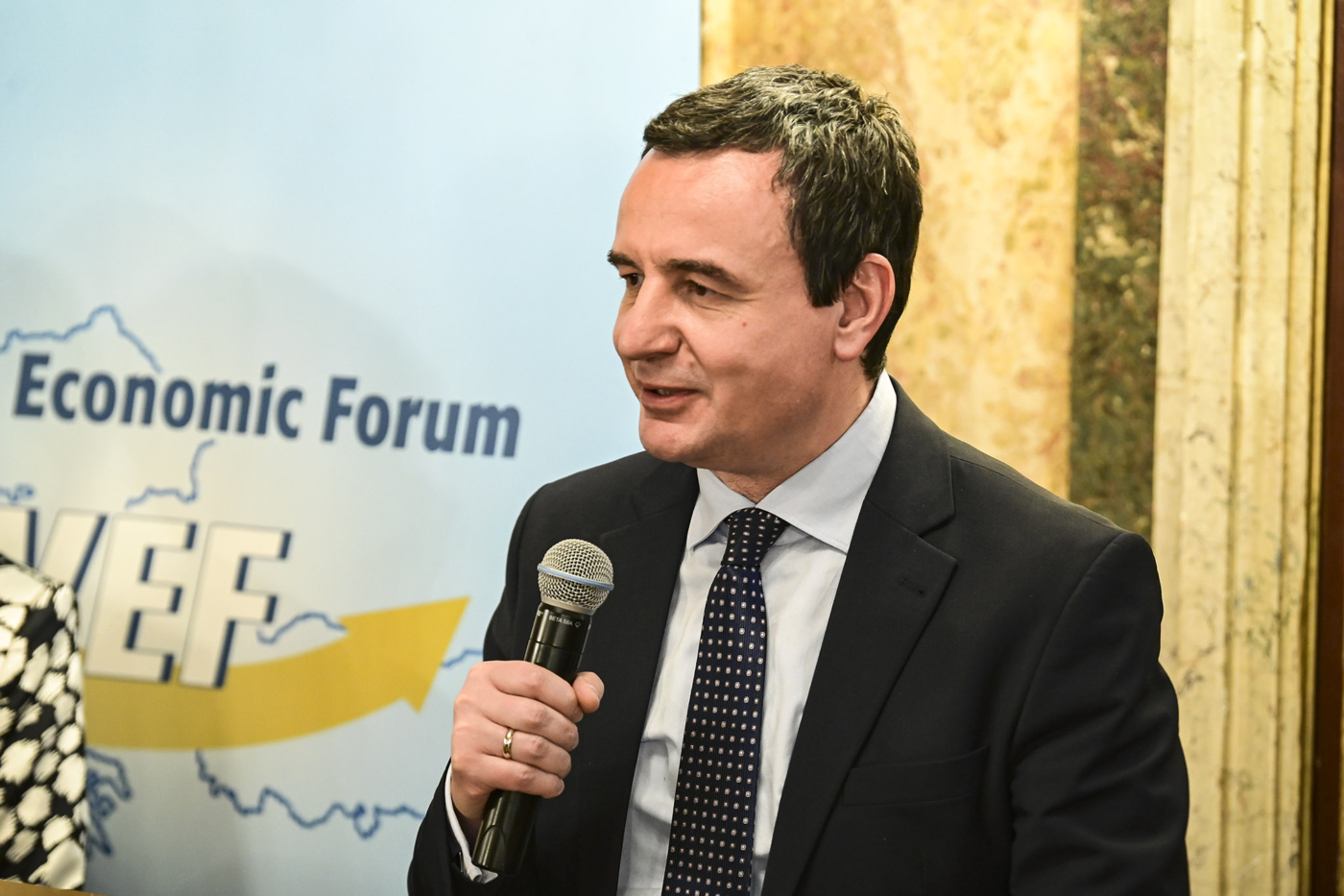 Në adresimin e tij, Kurti falënderoi organizatorët e forumit dhe pjesëmarrësit e tij, përcjell Arbresh.info.