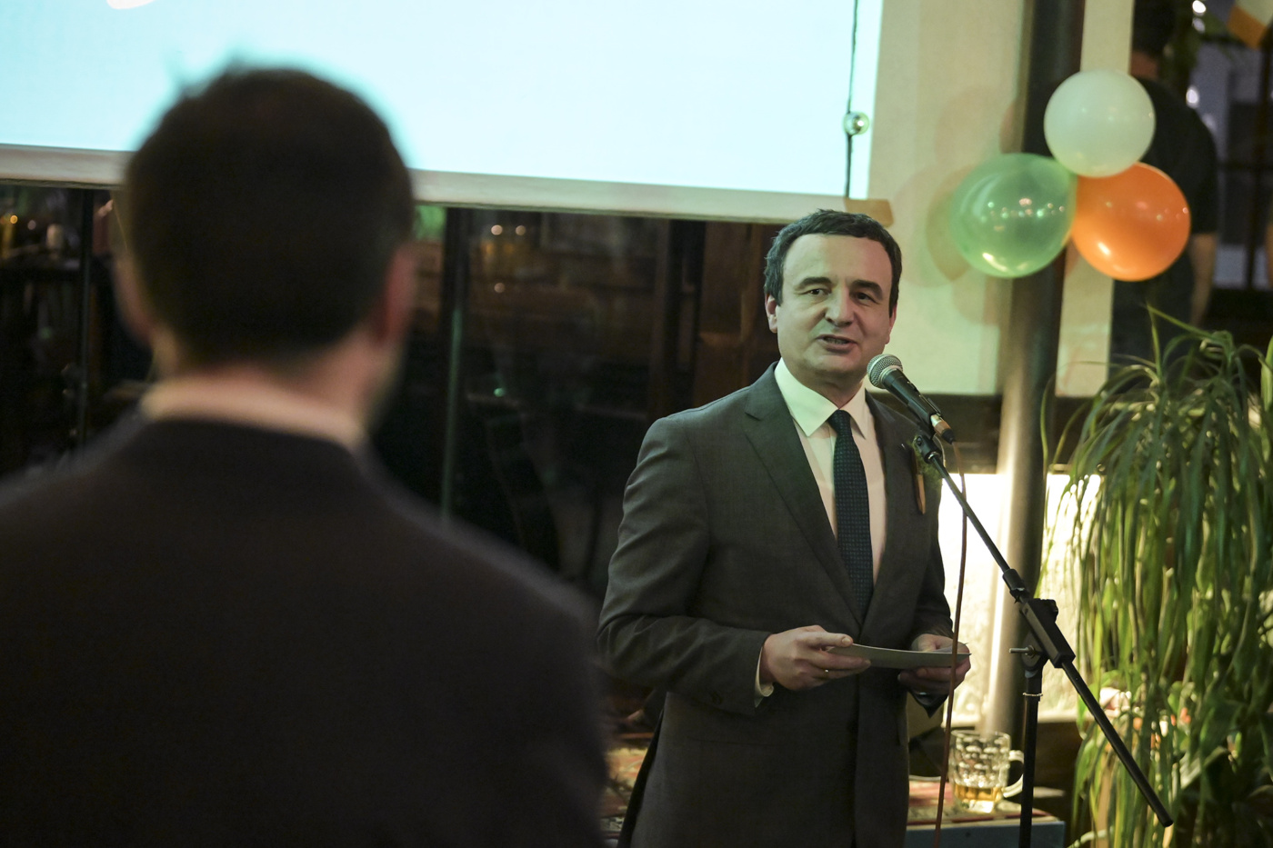 Kryeministri i Republikës së Kosovës, Albin Kurti, mbrëmë mori pjesë në shënimin e Ditës Kombëtare të Irlandës të organizuar nga Ambasada e Irlandës në Kosovë. Në po të njëjtën ditë Irlanda feston edhe festën e Shën Patrikut, i cilësuar ndryshe si shenjtori mbrojtës i shtetit të Irlandës.