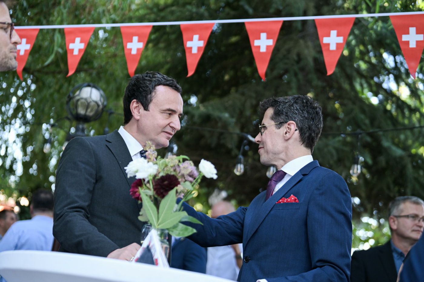 Kryeministri i vendit, Albin Kurti, mbrëmjen e sotme mori pjesë në pritjen e organizuar nga Ambasada e Zvicrës, për nder të shënimit të Ditës Kombëtare.