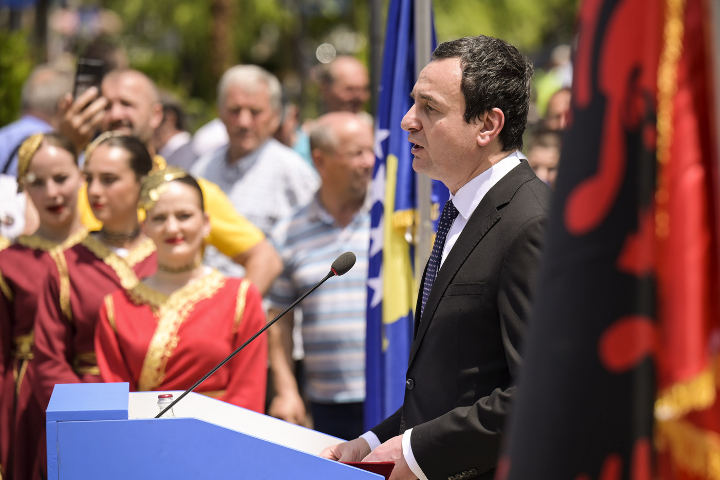 “Prandaj çdo 10 qershor, ne vijmë në Prizren për ta kujtuar Lidhjen Shqiptare nga vendi ku ajo u ngjiz dhe mori jetë pastaj, për tu shtrirë në krejt hapësirën shqiptare dhe tutje përpara në kohë deri te ne sot. Prandaj sot i kemi këtu edhe Presidentët e të dyja shteteve tona republikane, të Shqipërisë dhe të Kosovës, për ta mirëmbajtur linjën drejtuese institucionale të kultivimit të idealeve dhe interesave politike të kombit shqiptar. Prandaj jam dhe vetë këtu, si Kryeministër i Qeverisë së Republikës së Kosovës, të përkujtojë rrënjët politike të qeverimit të shqiptarëve dhe të përforcojë lidhjet e qeverisë tonë me filozofinë politike të Lidhjes Shqiptare të Prizrenit”, ishin fjalët e kryeministrit Kurti.