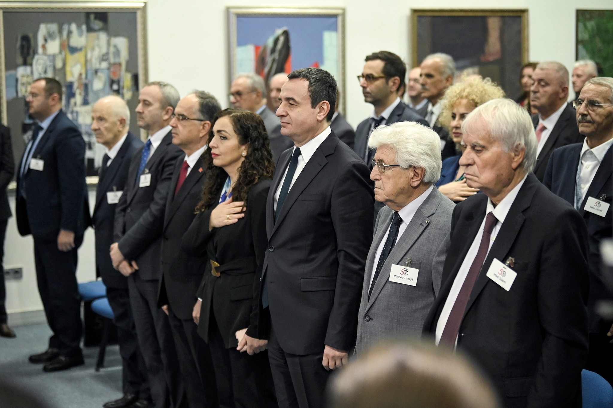 “Duke e ruajtur habinë filozofike dhe dyshimin hipotetik, duke e ndjekur kureshtjen, duke e kultivuar hulumtimin, duke e zhvilluar studimin, me shpresë për sa më shumë shkencë dhe dije, bukuri dhe filozofi, le të bashkohemi mes urimeve tona për gjysmëshekullin e dytë të Akademisë së Shkencave dhe Arteve të Kosovës”, tha Kurti./Arbresh.info