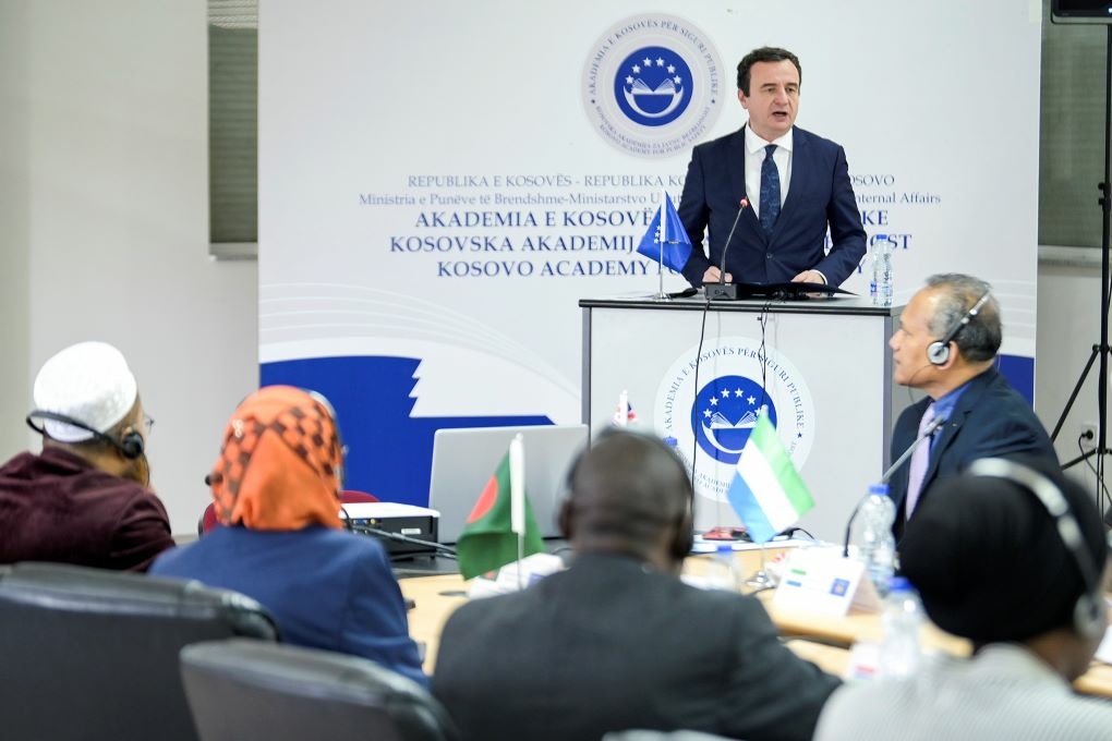 Kurti para pjesëmarrësve, zyrtarë të sigurisë publike nga pesëmbëdhjetë vende të ndryshme të botës, tha se përballë këtyre sfidave globale të sigurisë, është e domosdoshme ndihma, bashkëpunimi dhe bashkëveprimi i të gjitha shteteve që mbështeten në vlera demokratike, për ballafaqim me terrorizmin dhe krimet të cilat cenojnë sigurinë e shteteve e popujve kudo në botë.