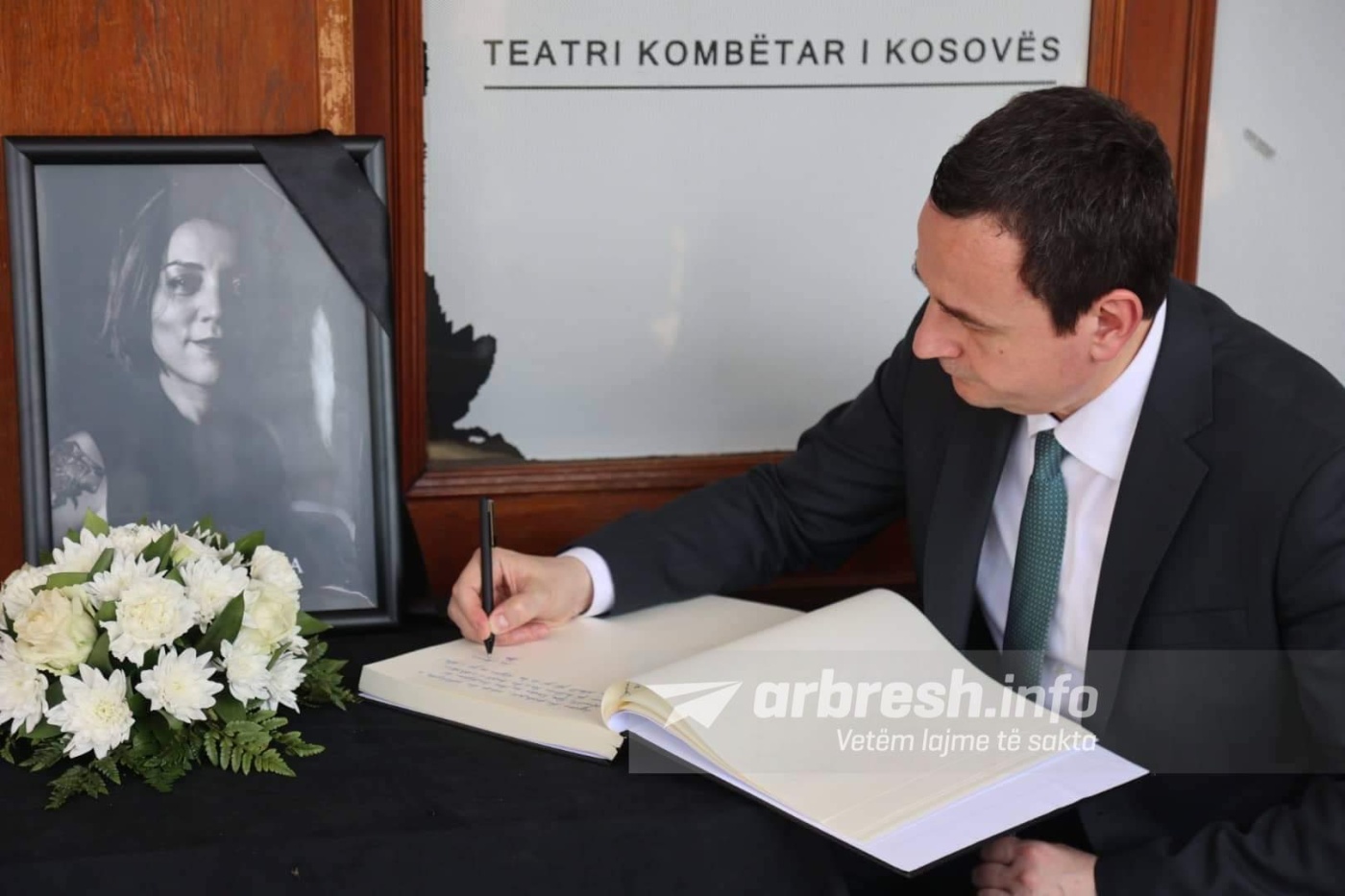 Kryeministri i Republikës së Kosovës, Albin Kurti, ka vendosur lule të freskëta dhe ka bërë homazhe para arkivolit të regjisores Vjosa Berisha, të vendosur në hollin e Teatrit Kombëtar të Kosovës.