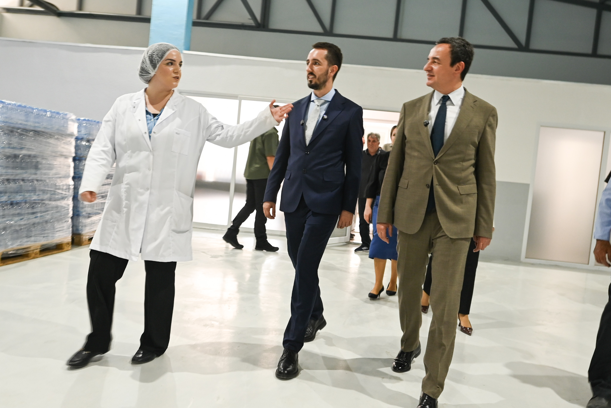 “Së pari, fabrikën më të re të ujit “Qua FIX”, e cila u hap këtë vit me një investim prej mbi 500 mijë eurosh. Me kapacitet prodhues prej 10 mijë litrash ujë në orë, kjo fabrikë tashmë punëson 12 persona”, ka shkruar Kurti.