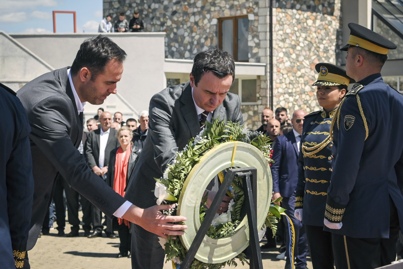 Kryeministri i Republikës së Kosovës, Albin Kurti, bëri sot homazhe dhe vendosi kurora me lule në Kompleksin Memorial në Mejë të Gjakovës, në nderim të të gjithë të vrarëve në Masakrën e Mejës, 24 vjet më parë.