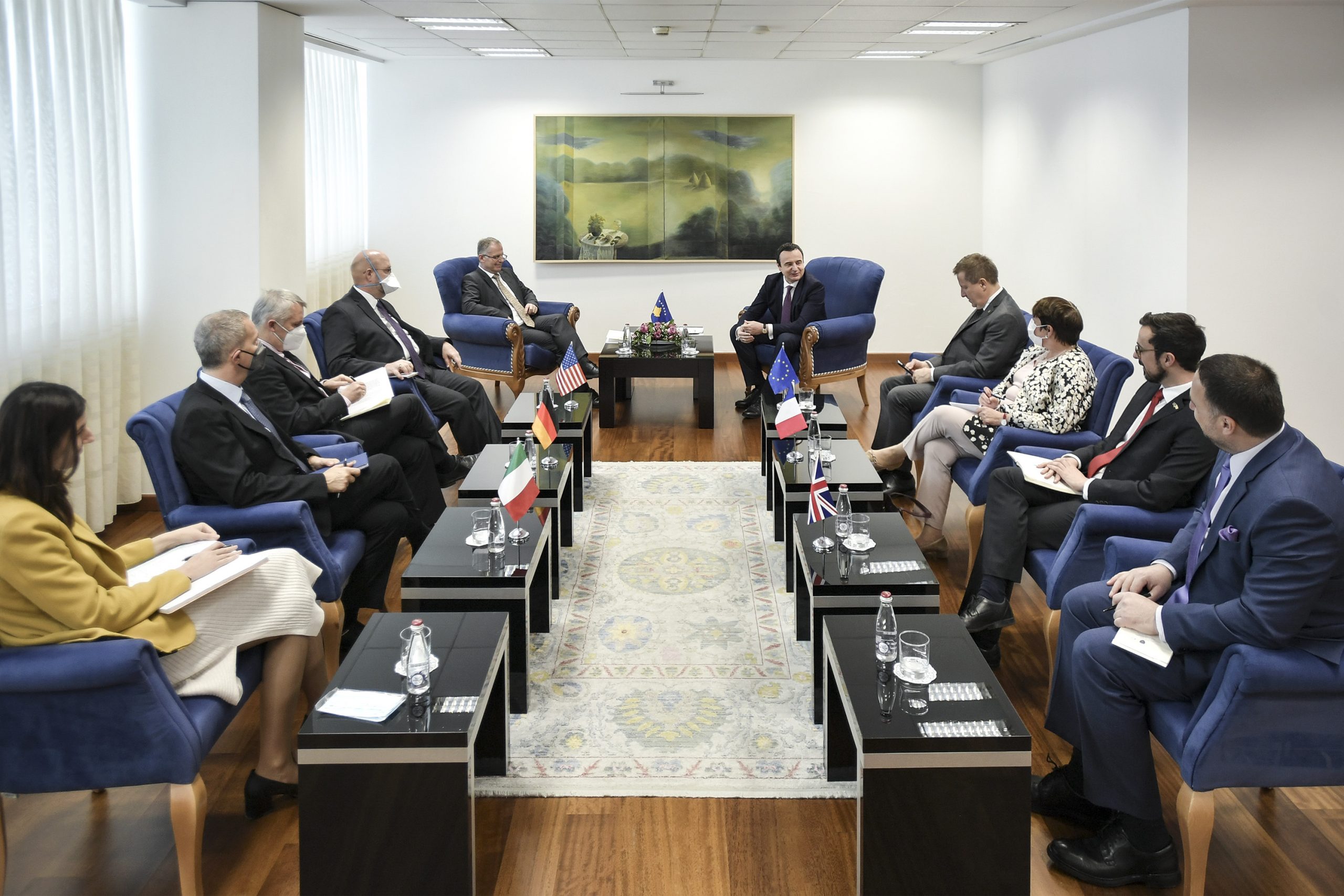 Kryeministri i Kosovës, Albin Kurti ka pritur sot në zyrë bashkë me zëvendëskryeministrin e Kosovës, Besnik Bislimi dhe shefin e Stafit të Kryeministrit, Luan Dalipin ambasadorët e vendeve të QUINT-it së bashku me shefin e Zyrës së BE-së në Kosovë.