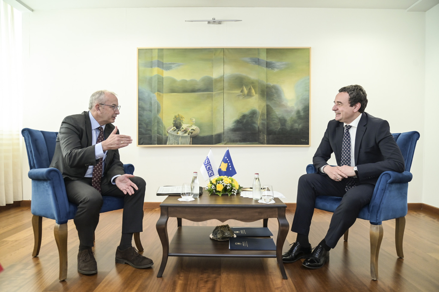 Kryeministri i Republikës së Kosovës, Albin Kurti, mirëpriti gjatë ditës së sotme shefin e OSBE-së në Kosovë, Michael Davenport dhe ambasadorin e Zvicrës, Jurg Sprecher.