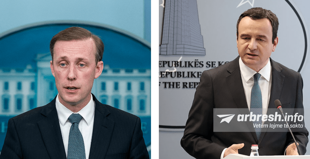 “Telefonatë inkurajuese me Këshilltarin e Sigurisë Kombëtare të Presidentit Biden, Jake Sullivan. E falënderova për mbështetjen e ShBA-së për sigurinë kufitare të Kosovës dhe kërkova rritje të shtuar ndaj planeve të Serbisë për luftë. E sigurova për vazhdim të bashkëpunimit të Policisë së Kosovës me KFOR-in dhe se përkushtimi ynë për t’i mbrojtur të gjithë qytetarët e vendit është i paluhatshëm”, ka shkruar Kurti. /Arbresh.info/