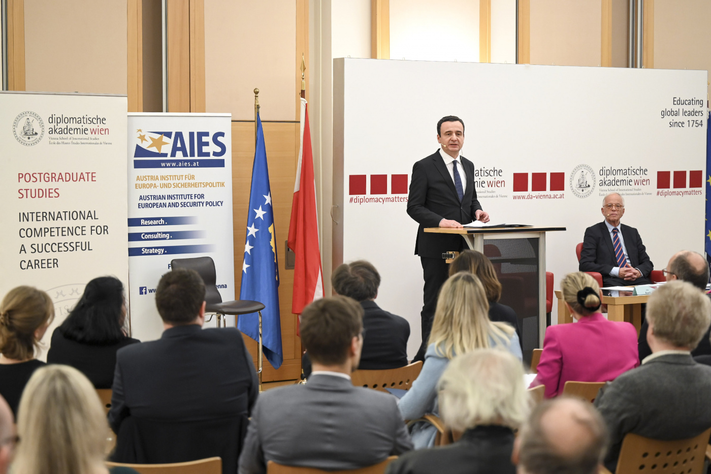 Fjalimi i kryeministrit Kurti në Akademinë Diplomatike të Vjenës