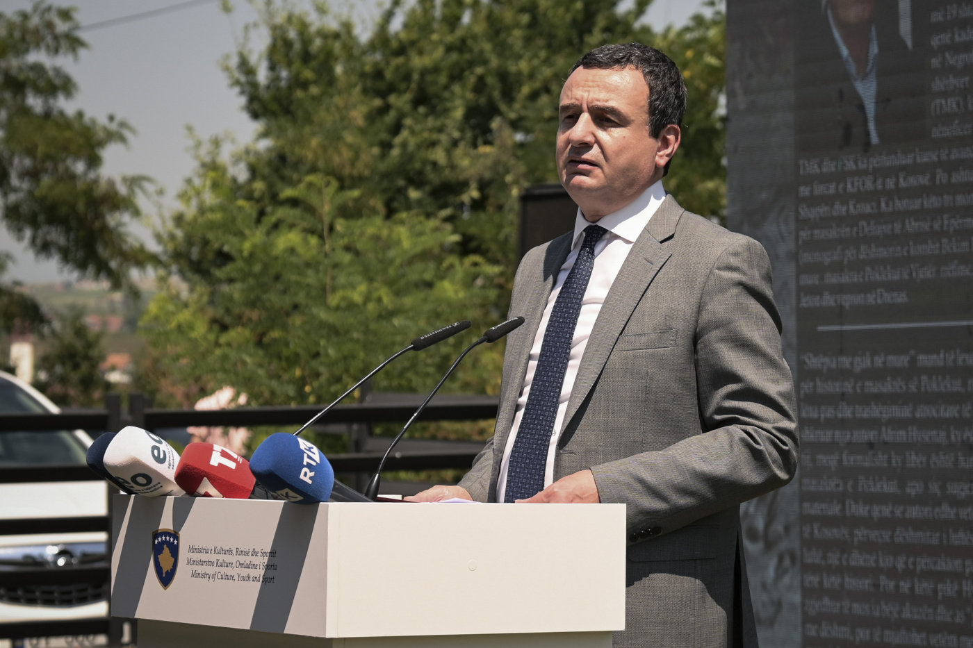 Në fjalën e tij, Kurti gjithashtu përmendi projektin serbomadh për shfarosjen e shqiptarëve, “Patkoi”, dhe përpjekjet e shtetit serb që të zhukte gjurmët e krimit gjenocidal duke i djegur trupat e të vrarëve.
