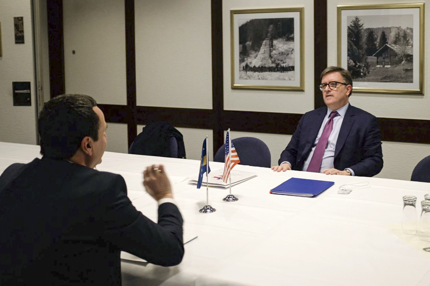 Pas pjesëmarrjes në panairin “Swissbau 2024”, kryeministri i Republikës së Kosovës, Albin Kurti, vijoi me agjendën e tij në Davos të Zvicrës, ku u takua me Zëvendës Sekretarin për Çështjet Evropiane dhe Euroaziatike të Departamentit të Shtetit amerikan, James C. O’Brien.