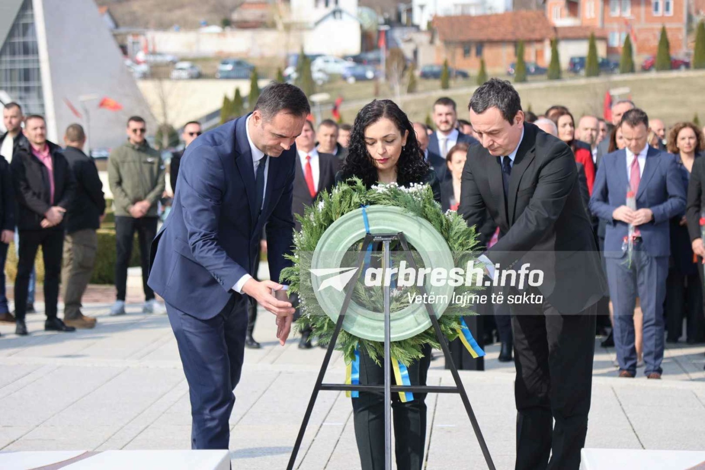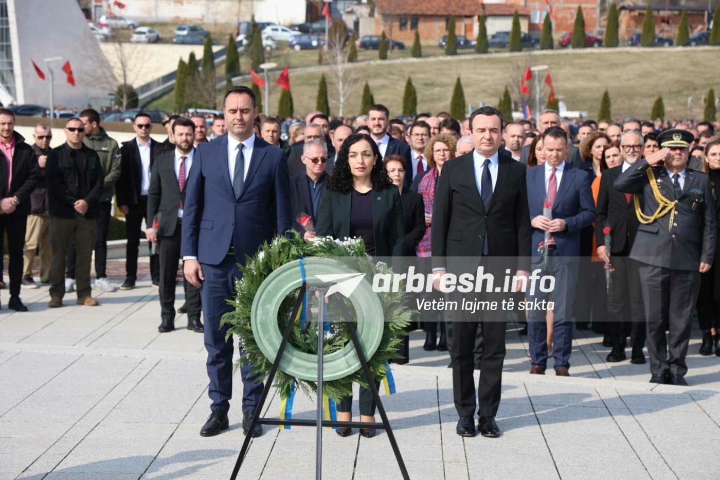 Kryeministri i Republikës së Kosovës, Albin Kurti, bashkë me presidenten e vendit Vjosa Osmani Sadriu, Kryetarin e Kuvendi, Glauk Konjufca dhe anëtarë të kabinetit qeveritar, bëri sot homazhe në Kompleksin Memorial “Adem Jashari” në Prekaz, në vazhdën e aktiviteteve për nder të 26-vjetorit të Epopesë së Ushtrisë Çlirimtare të Kosovës.