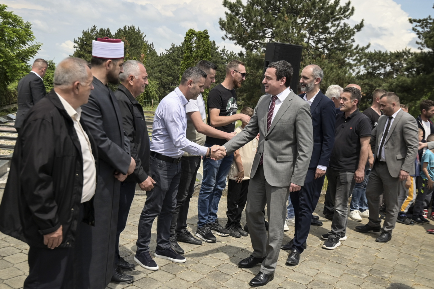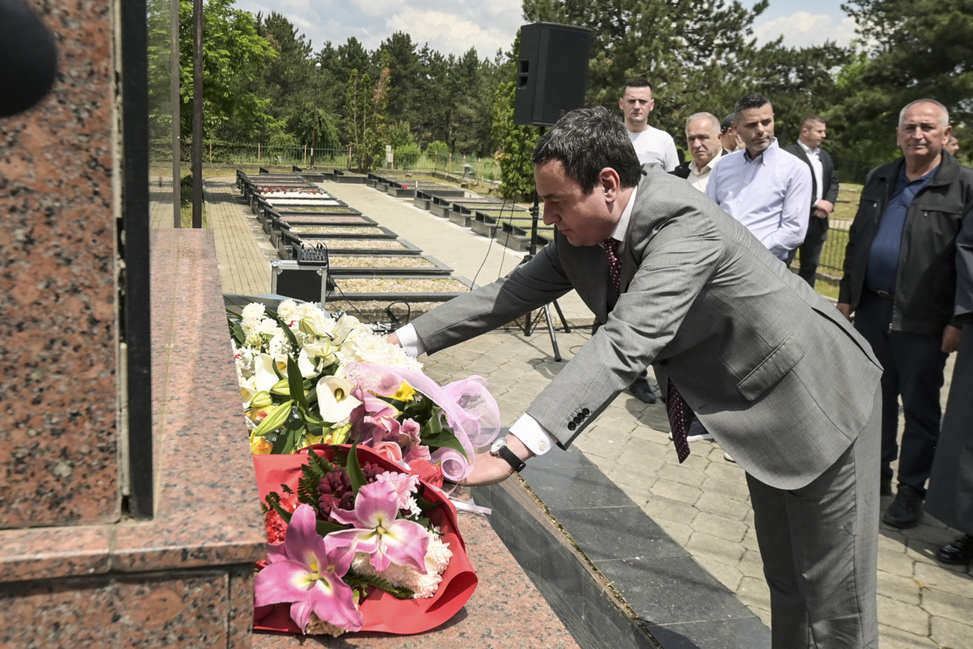 Kurti përkujtoi martirët e lagjes së Trimave-Tusuzit, që para 25 vitesh u vranë mizorisht dhe në mënyrë të pamëshirshme. “27 martirët e Tusuzit, janë sot 27 lule nga të cilët rritet liria jonë dhe gëzohet shteti ynë”, tha ai.