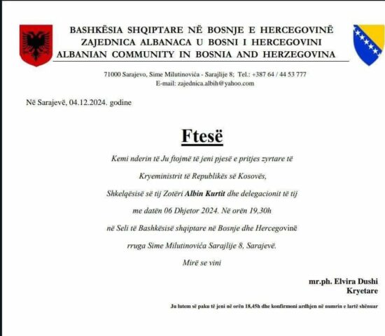 Mediat boshnjake raportojnë se Kurti pritet të takohet me nënkryetarin e Federatës së Bosnjë-Hercegovinës, Refik Lenda.