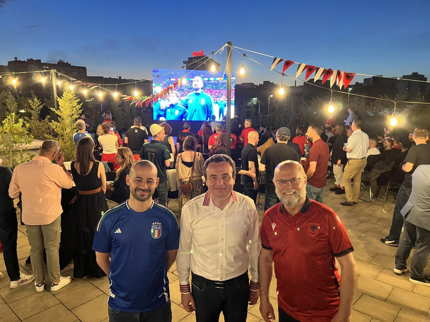 Kryeministri i Kosovës, Albin Kurti, së bashku me ambasadorin e Shqipërisë, Petrit Malaj, ka shikuar ndeshjen mes Italisë e Shqipërsë, për Euro 2024 së bashku.