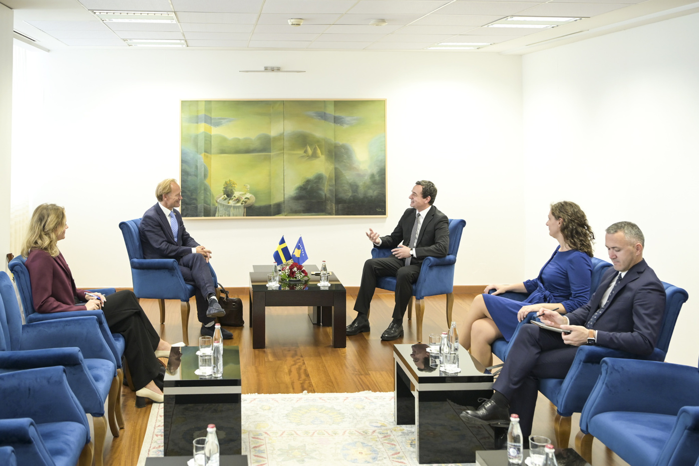 Kryeministri i Republikës së Kosovës, Albin Kurti, i shoqëruar nga ministrja e Ekonomisë, Artane Rizvanolli, mirëpriti ambasadorin e Suedisë në Kosovë, Jonas Westerlund.