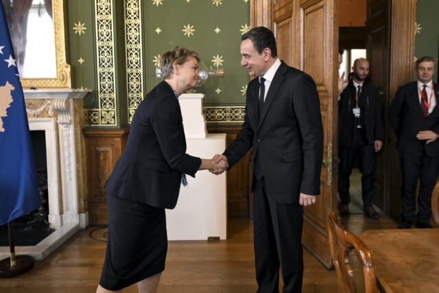 Pak para fillimit të punimeve të Samitit të Procesit të Berlinit, i cili po mbahet në Londër, Kryeministri në detyrë i Republikës së Kosovës, Albin Kurti, u mirëprit në takim nga Sekretarja e Shtetit për Punë të Jashtme të Mbretërisë së Bashkuar, Yvette Cooper.