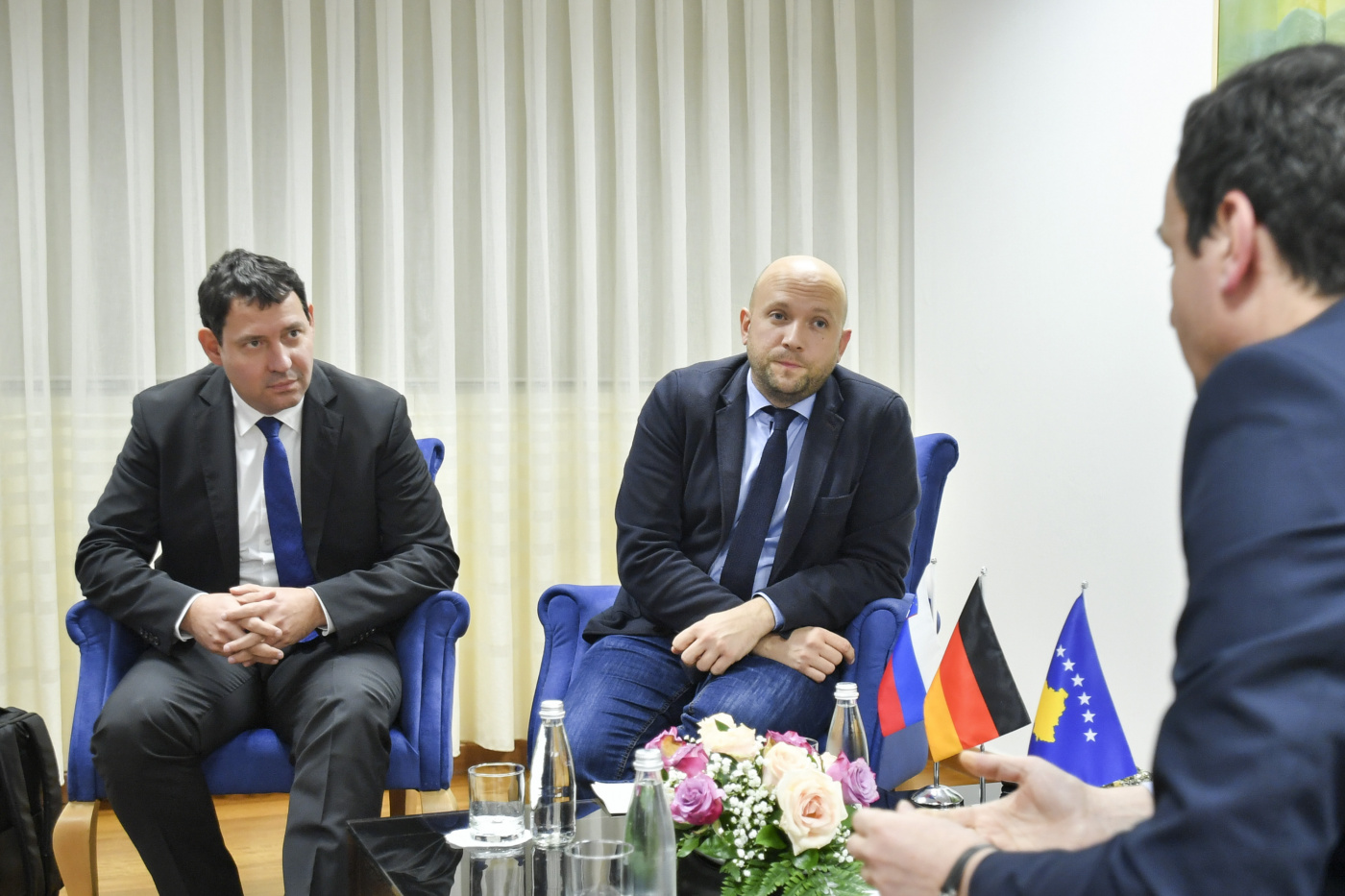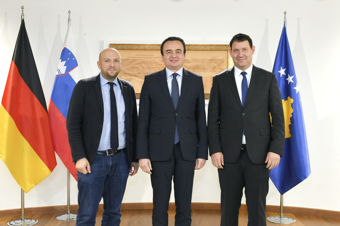 Për të diskutuar për situatën në vend, raportet ndërmjet Kosovës dhe Serbisë, Procesin e Berlinit dhe çështje tjera aktuale, Kryeministri i Republikës së Kosovës, Albin Kurti priti në zyrën e tij Emisarin e Gjermanisë për Ballkanin Perëndimor, Manuel Sarrazin, shoqëruar nga ambasadori i Gjermanisë në Kosovë, Joern Rohde dhe të Dërguarin e posaçëm të Sllovenisë për Ballkanin Perëndimor, Anžej Frangeš, i shoqëruar nga Ambasadorja e Sllovenisë në Kosovë, Minca Benedejčič.