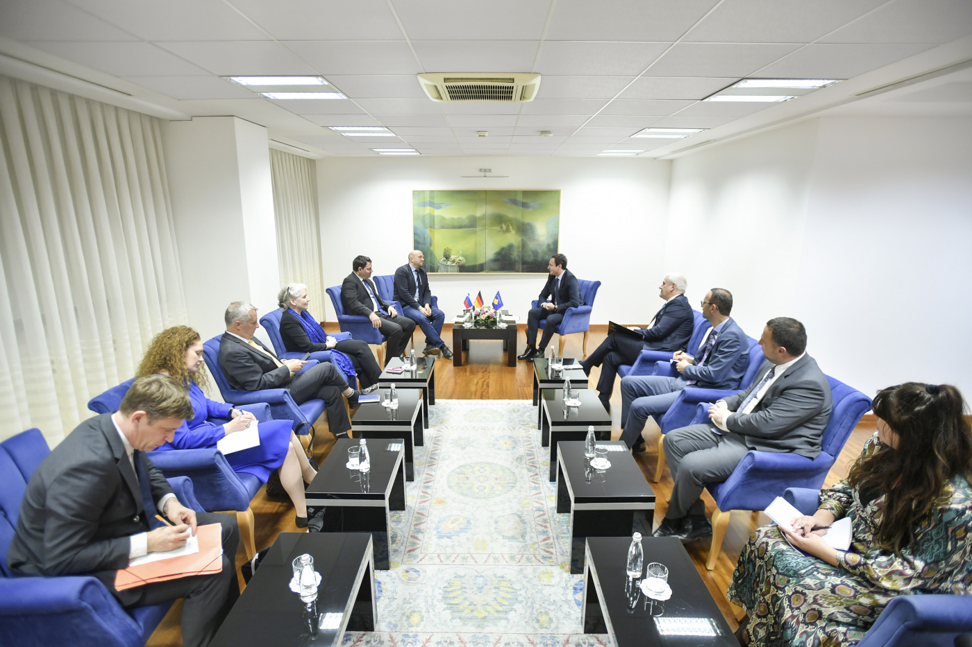 Në këtë takim, përkrah kryeministrit Kurti ishin Ministri i Punëve të Brendshme, Xhelal Sveçla dhe Ambasadori i Kosovës në Gjermani, Faruk Ajeti.