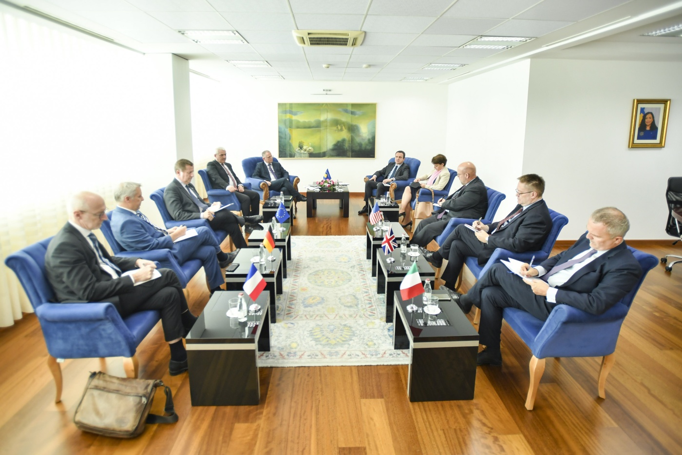 Kryeministri i Republikës së Kosovës, Albin Kurti, bashkë me zëvendëskryeministrin Besnik Bislimi, zëvendëskryeministren Donika Gërvalla Schwarz dhe Ministrin e Punëve të Brendshme, Xhelal Sveçla, priti në takim ambasadorët e vendeve të QUINT-it dhe përfaqësuesin e Zyrës së Bashkimit Evropian në Kosovë.