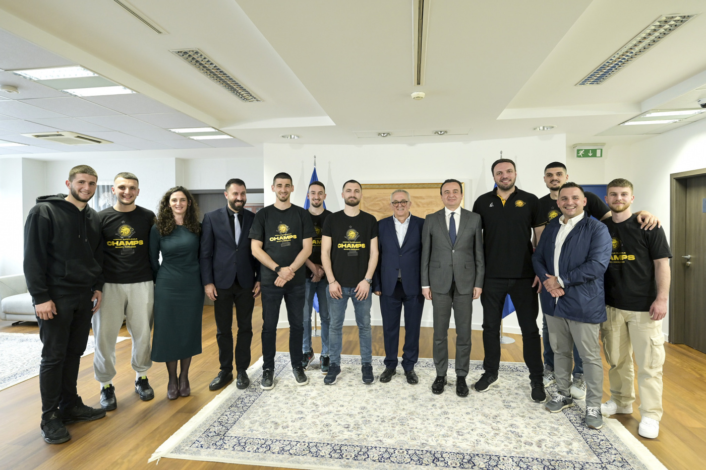 Kryeministri i Republikës së Kosovës, Albin Kurti, priti dje në takim kampionët e këtij edicioni të super-ligës së basketbollit në Kosovë, Klubin e Basketbollit Peja.