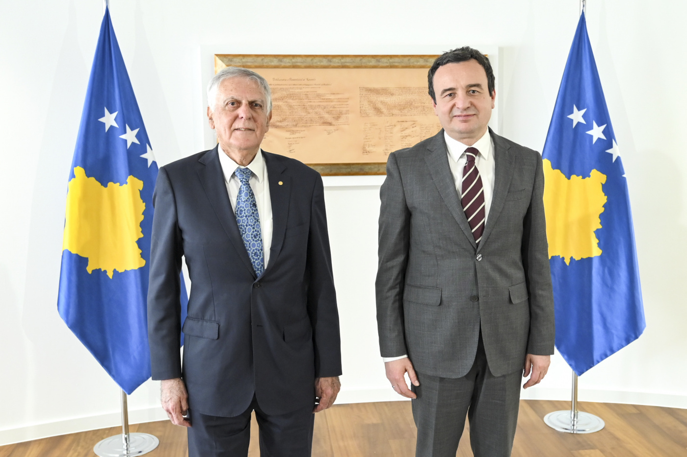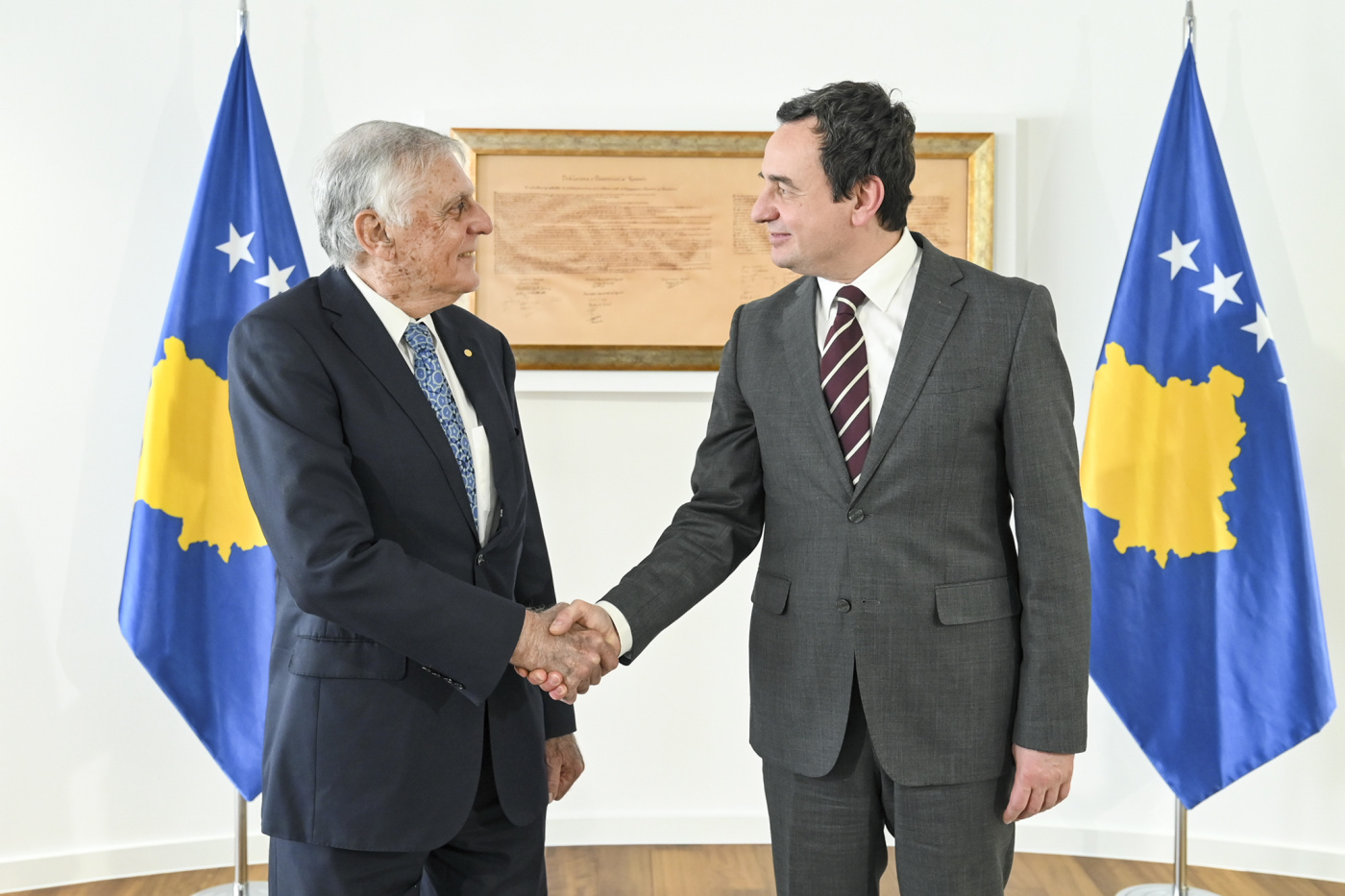 Kryeministri i Republikës së Kosovës, Albin Kurti, mirëpriti sot në takim fituesin e çmimit nobel për Kimi, Dan Shechtman, që shoqërohej nga Konsulli i Nderit i Kosovës në Austri, David Ungar-Klein.