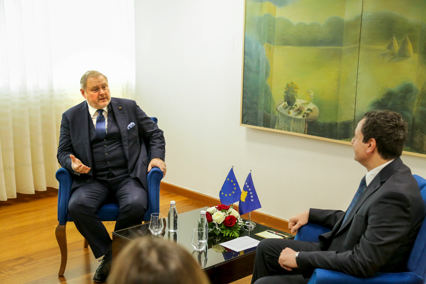 Kryeministri i vendit, Albin Kurti, mirëpriti eurodeputetin nga Estonia, Riho Terras, që po zhvillon vizitën e parë në Kosovë pas marrjes së detyrës si raportues për Kosovën në Parlamentin Evropian.