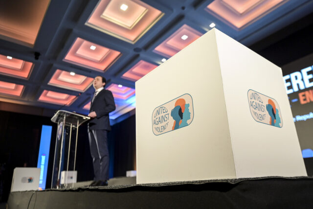 Më tej, nënvizoi se është koha e fundit, që të vetëdijesohemi e të veprojmë së bashku, ne që mendojmë e diskutojmë së bashku, derisa bëri thirrje që shkollat tona publike e private, mediat tona publike e private, artistët e sportistët, personat që kanë ndikim të shtuar në shoqëri, të gjithë t’i evitojnë mesazhet, porositë publike, private që mund të shihen si nxitëse apo justifikuese të dhunës, dhe duhet të bashkohen në fushatën tonë kundër dhunës me bazë gjinore.