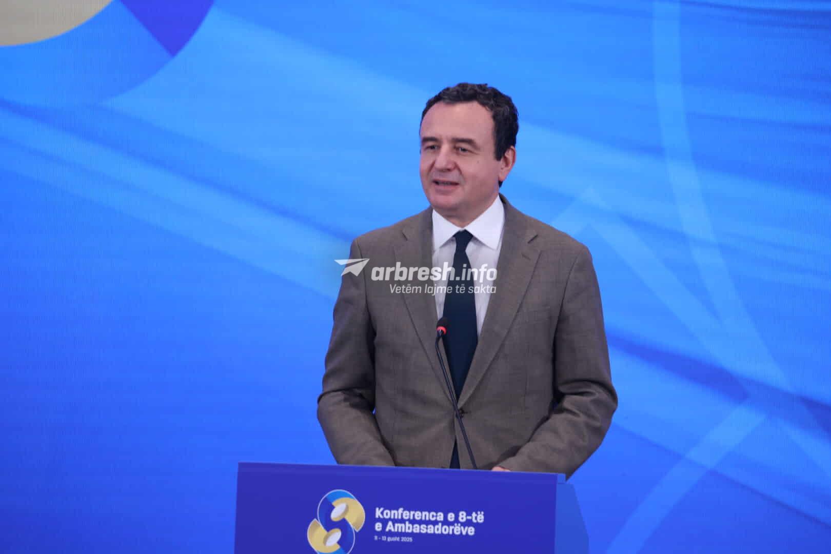 Kryeministri në detyrë i Republikës së Kosovës, Albin Kurti, në edicionin e 8-të të Konferencës së Ambasadorëve, tha se përpjekjet e Serbisë për të minuar sovranitetin dhe integritetin territorial të shtetit të Kosovës vazhdojnë të paraqesin kërcënim ndaj sigurisë sonë kombëtare.