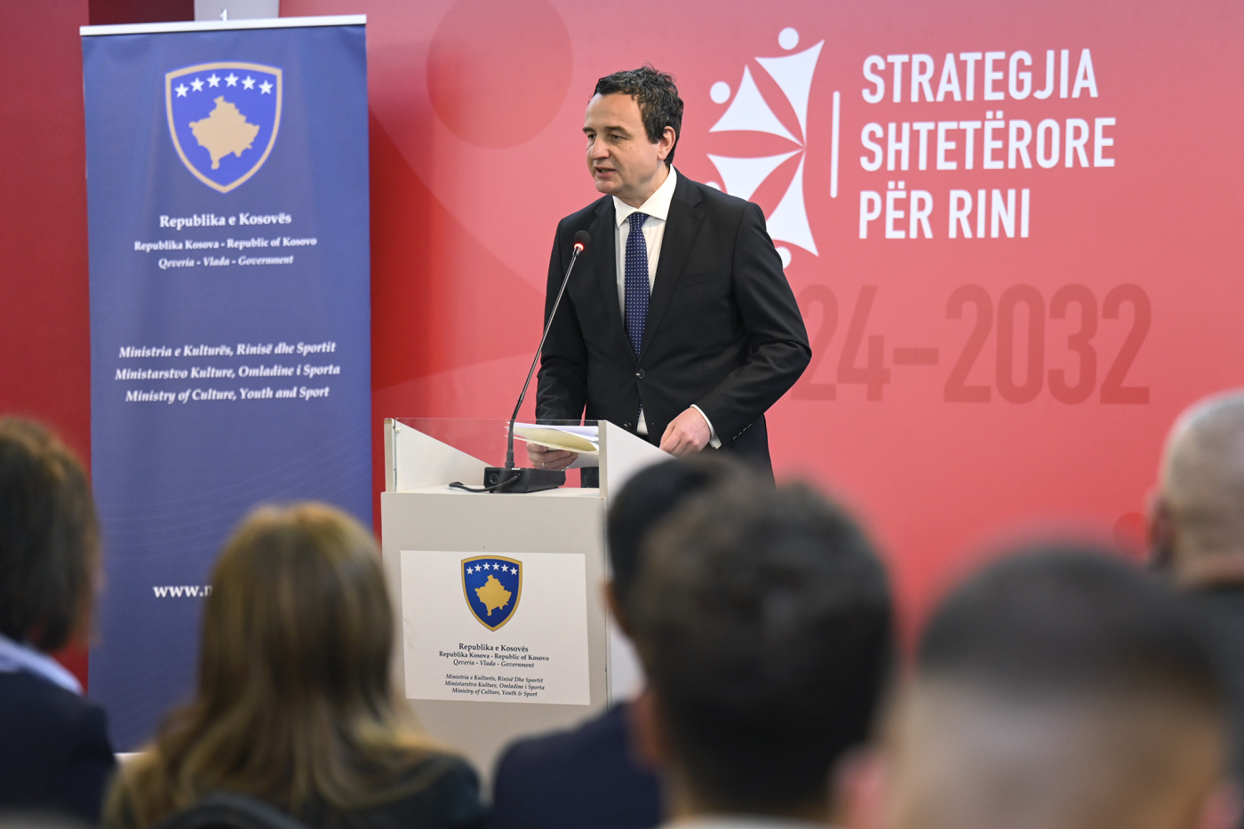 Kryeministri i Kosovës, Albin Kurti, mori pjesë në prezantimin e procesit hartues të Strategjisë Shtetërore për Rini 2024-2032 dhe Planit të Veprimit 2024-2026, organizuar nga Ministria e Kulturës, Rinisë dhe Sportit.