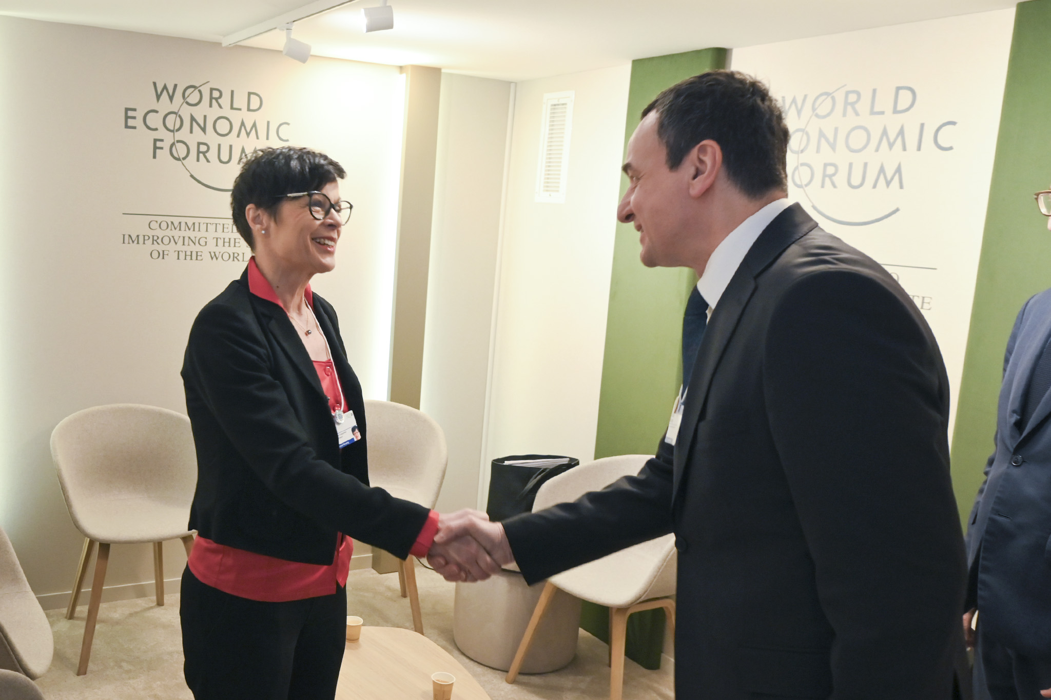 Takimi i radhës i Kryeministrit në detyrë të Republikës së Kosovës, Albin Kurti, në margjina të Forumit Ekonomik Botëror, u mbajt me Komisioneren e Bashkimit Evropian për Zgjerim, Marta Kos.