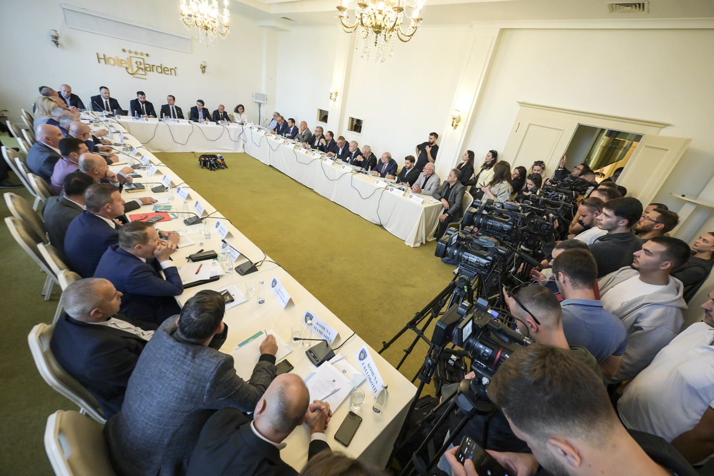 Me qëllim të thellimit të bashkëpunimit dhe zgjerimit të mëtutjeshëm të komunikimit ndërmjet nivelit qendror dhe atij lokal, sot u zhvillua takimi i shtatë i rregullt me kryetarët e komunave të Kosovës, kryesuar nga Kryeministri i Republikës së Kosovës, Albin Kurti, me bashkëpraninë e ministrit të Administrimit të Pushtetit Lokal, Elbert Krasniqi dhe ministrin e Financave, Punës dhe Transfereve, Hekuran Murati.