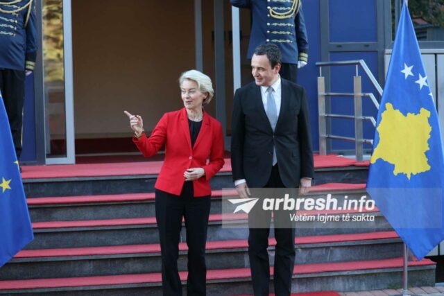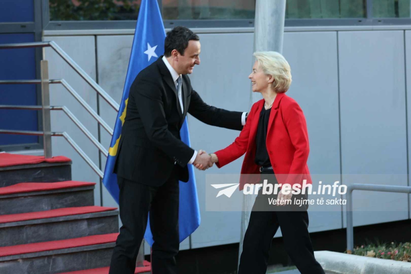 Presidentja e Komisionit Evropian, Ursula von der Leyen, është pritur në takim nga kryeministri Albin Kurti.