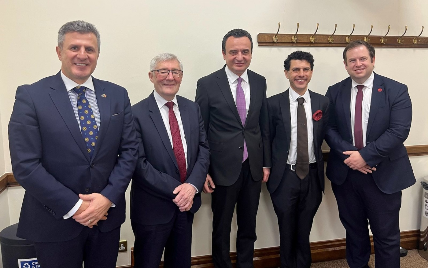 Kryeministri i Kosovës, Albin Kurti, i shoqëruar nga ambasadori Ilir Kapiti, në Parlamentin Britanik takoi sot deputetët e Grupeve Parlamentare të Mbretërisë së Bashkuar, APPG (All Party Parliamentary Group), të përbërë nga: Harriett Baldwin, Stephen Doughty, Alex Sobel, Martin Vickers, Luke Pollard, Matthew Offord dhe Tony Lloyd.