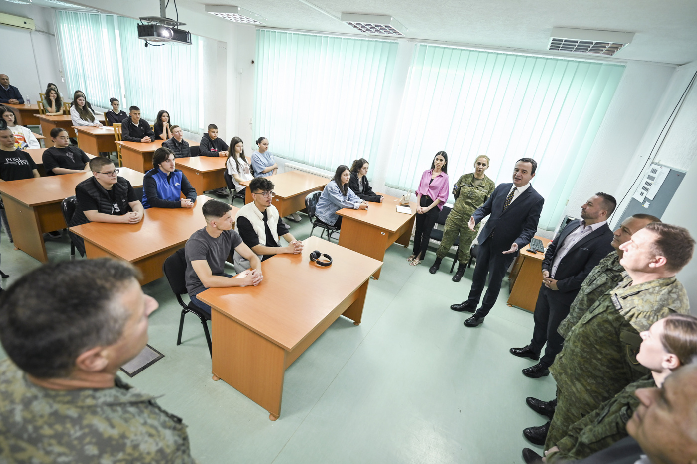 Kryeministri i Republikës së Kosovës, Albin Kurti, bashkë me ministrin e Mbrojtjes, Armend Mehaj, sot ka vizituar kazermën e FSK-së “Skënderbeu” në Ferizaj, ku grupe nxënësish po mbanin ligjeratë mbi “Njohuritë e përgjithshme rreth institucioneve të sigurisë”.
