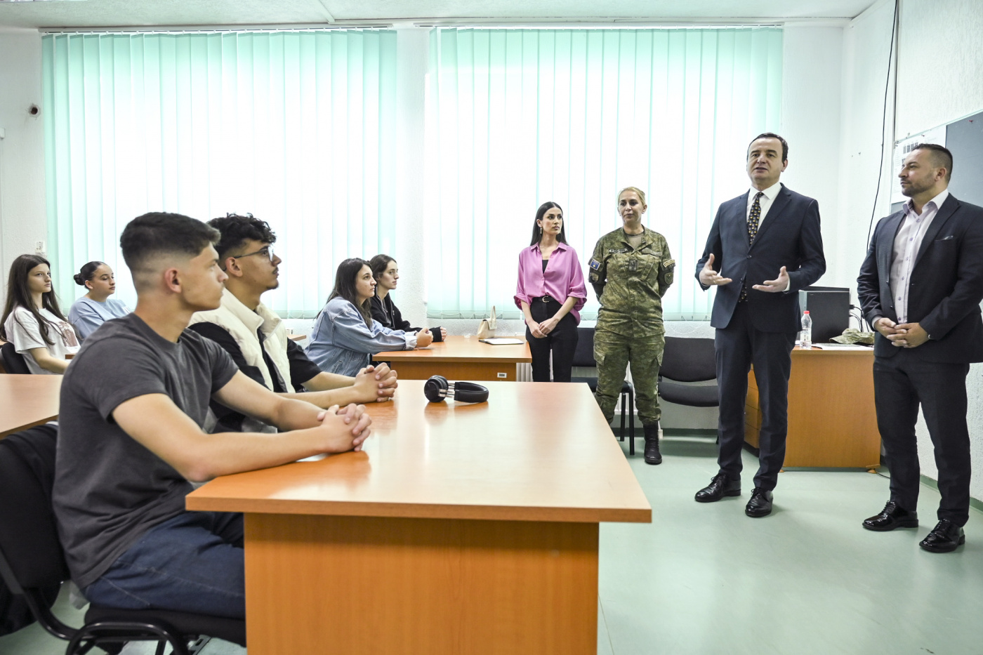Kryeministri Kurti, para nxënësve, me qëllim të shpalosjes dhe implementimit të programit “Edukimi për Siguri”, shprehu vlefshmërinë e programit për sigurinë publike dhe atë shtetërore duke i’a kujtuar atyre rëndësinë e mësimit të institucioneve të sigurisë dhe historikun të tyre.